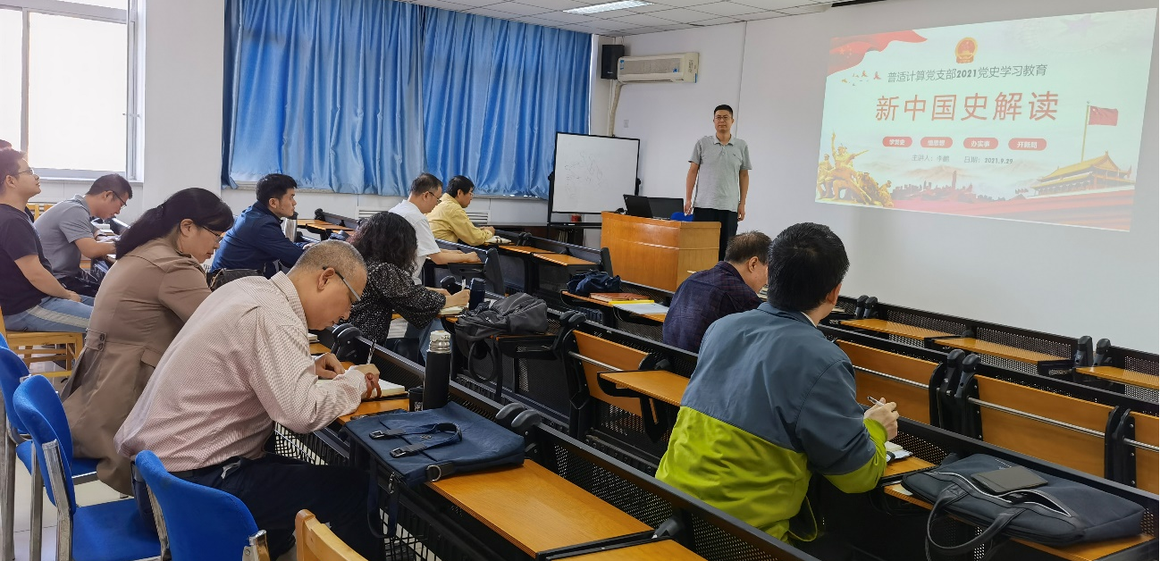 李鹏副院长以“新中国史解读”为主题,为普适计算支部讲党课,指导支部开展党史学习教育。